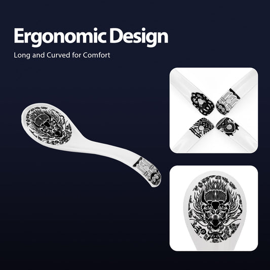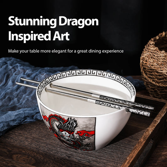 Dragon Ceramic Ramen Bowl With Reusable Stainless Steel Chopsticks