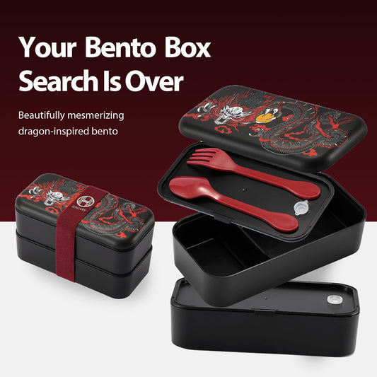 Dragon Bento Box 2 Tier Japanese Lunch Box with Spoon and Fork 800ml