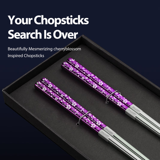 Cherry Blossom Purple Metal Reusable Chopsticks